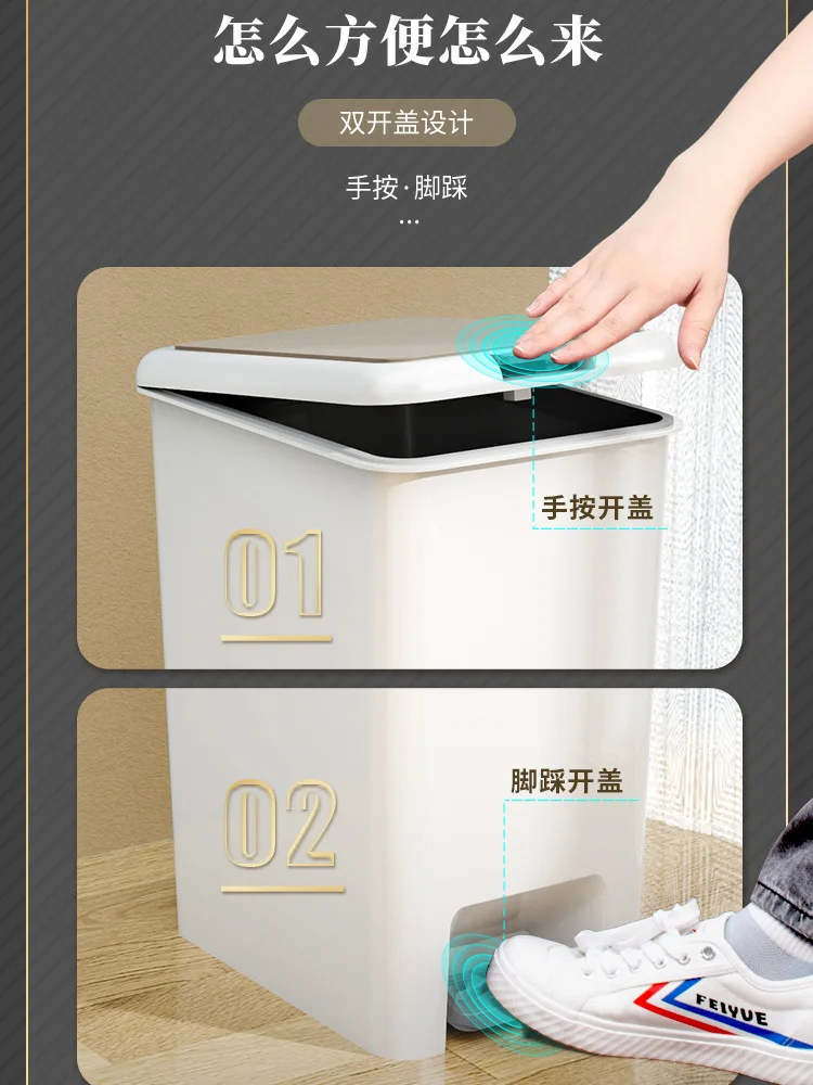 • 👣 פתיחה ברגלית: לשימוש נוח והיגייני